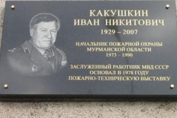 Во исполнение решения Совета депутатов г. Мурманска от 24.03.2009 № 62-764 мемориальная доска установлена 15.04.2009г. в преддверии 360-ой годовщины со Дня образования пожарной охраны России, в целях увековечивания памяти Какушкина Ивана Никитовича и истории создания подразделения....