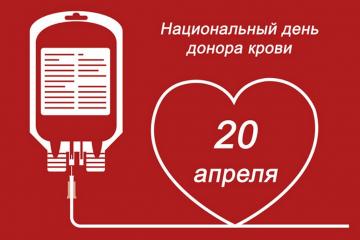 Национальный день донора крови ежегодно отмечается в России 20 апреля. Он был учрежден 20 февраля 2007 года на "круглом столе" по проблемам донорства и службы крови, состоявшемся в Государственной Думе РФ в память о первом переливании крови в России. 20 апреля 1832 года петербургский акушер...