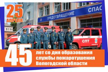 25 апреля, — День образования службы пожаротушения (СПТ) Вологодской области. Именно в этот день в 1977-м году в управлениях пожарной охраны УВД Вологодской области был создан штаб пожаротушения . На сегодняшний день служба пожаротушения — это структурное подразделение...