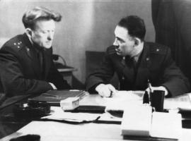 Инженер ОПО МВД КАССР Пулкинен Рудольф Петрович и заместитель начальника ОПО МВД КАССР Кубасов Александр Иванович, 60-е г.