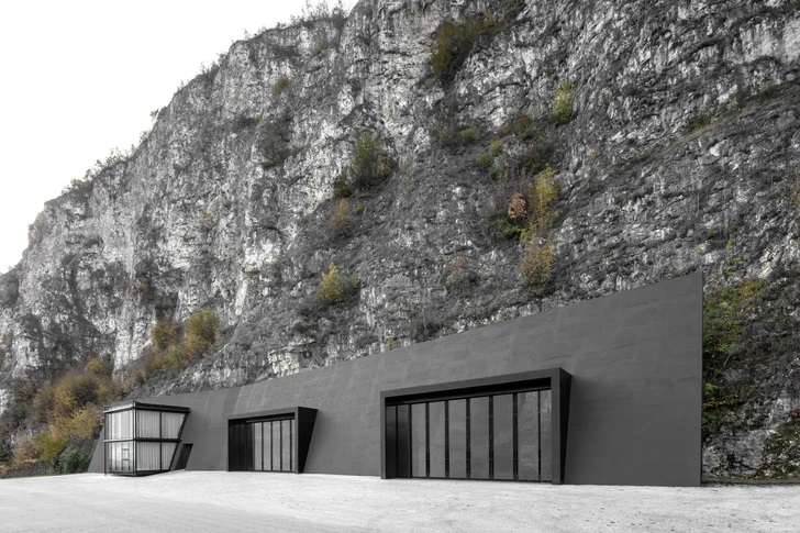 Это, пожалуй, одна из самых необычных пожарных станций в мире. Архитекторы Bergmeisterwolf Architekten буквально встроили ее в скалу, выкопав три пещеры и закрыв их бетонным фасадом. Такое решение не только защищает здание от камнепадов, но и делает его частью горного ландшафта. Въезды в гаражи оформлены черными стальными рамами, а стеклянный куб административной зоны контрастирует с каменной массой.
