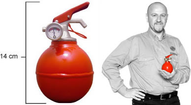 PinQY – крошечный огнетушитель с огромной силой. Внешне он похож на гранату, в длину достигает всего 14 см. Его задача – тушение пламени на начальном этапе. При перепаде давления Pingy взрывается, и содержимое обрушивается на очаг возгорания.
