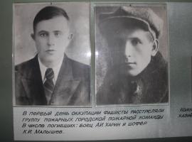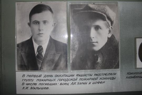 Во время оккупации г. Рыльска, когда ситуация стала наиболее критической, командованием было принято решение о выводе войск из города. Отход прикрывала группа пожарных г. Рыльска в число которых входили боец А.И. Харин и шофер К.И. Малышев. В итоге, героически сопротивлявшихся пожарных (оставшихся в живых) взяли в плен и в последствии расстреляли на площади г. Рыльска.
