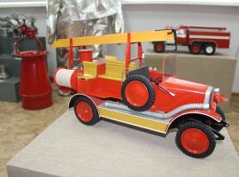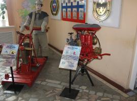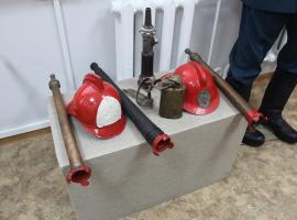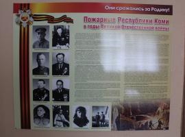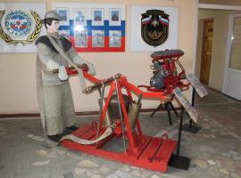 У входа в зал посетителя встречает группа манекенов, демонстрирующих пожарно-техническое снаряжение и вооружение пожарного. На первом манекене одежда брандмайора, руководителя пожарной охраны г. Усть-Сысольска в 1862 году. На остальных манекенах - специальные костюмы для защиты пожарных от огня и воды: брезентовый костюм-куртка, брюки, рукавицы, каска, спасательный пояс с карабином – таково боевое снаряжение «бойца огненного фронта». Кроме этого старого костюма, который в настоящее время не используется, существуют и другие огнезащитные и теплоотражательные костюмы, некоторые из них представлены на выставке. Пожарный лафетный ствол, стоящий за манекенами, служит для подачи воды на очаг пожара. Выставленные здесь же различные пожарные стволы также используются для этой цели. На вооружении пожарных имеется много пожарных машин, модели некоторых из них представлены на выставке. Вызывает интерес посетителей действующая модель пожарного автомобиля с выдвижной лестницей. Успех тушения пожара во многом зависит от того, как пожарный защищен от дыма. И здесь на помощь ему приходят различные приборы защиты органов дыхания. Все они представлены на следующем стенде: КИП-7, КИП-8, АИР-1378 и другие. На вооружении пожарных находится много ручных инструментов, предназначенных для вскрытия и разборки строительных конструкций, расчистки и уборки помещений, а также для выполнения других работ на пожаре. Эти инструменты демонстрируются в следующем разделе выставки. Кроме ручных инструментов пожарные вооружены механическими инструментами.