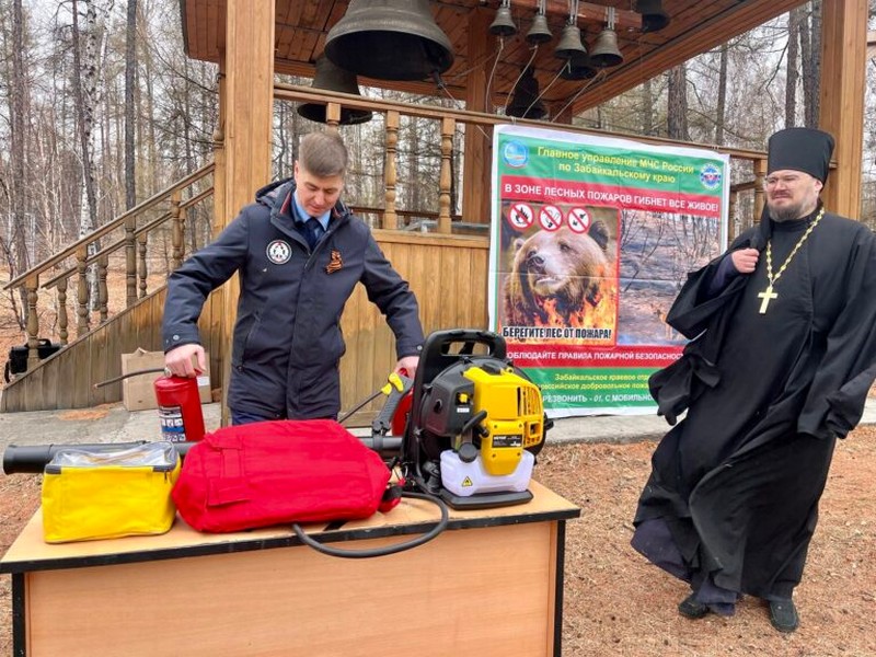 Забайкальское региональное отделение ВДПО передали Свято-Успенскому мужскому монастырю противопожарное оборудование: два огнетушителя, термостойкий капюшон из газодымозащитного комплекта, ранцевый огнетушитель и воздуходувку. Сотрудники МЧС провели для священников инструктаж по работе с техникой. Кроме того, в распоряжении монастыря уже имеется трактор для создания минерализованных полос и водовоз.