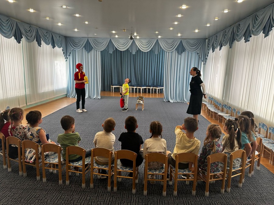 Используя методические материалы Методические рекомендации по обучению детей правилам пожарной безопасности (для воспитателей детских садов), она выстроила 20-минутные занятия так, что воспитанники повторили правила пожарной безопасности, вспомнили телефоны вызова экстренных служб, узнали о назначении огнетушителя – и все это в формате подвижных игр, мини-инсценировок фрагментов стихотворений С. Маршака и К. Чуковского вместе с Огневушкой-поскакушкой, ее шаловливым Огоньком и строгим, но добрым Огнетушителем.