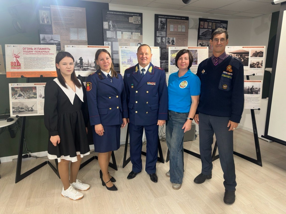 В Национальной библиотеке Республики Коми состоялось торжественное открытие мультимедийной выставки «Огонь и память. Подвиг пожарных в годы Великой Отечественной войны». Данная выставка - совместный проект Всероссийского добровольного пожарного общества и Российского военно-исторического общества. Выставка посвящена 80-летию Победы и рассказывает о героизме и самоотверженности огнеборцев, защищавших тыл страны в годы суровых испытаний.
