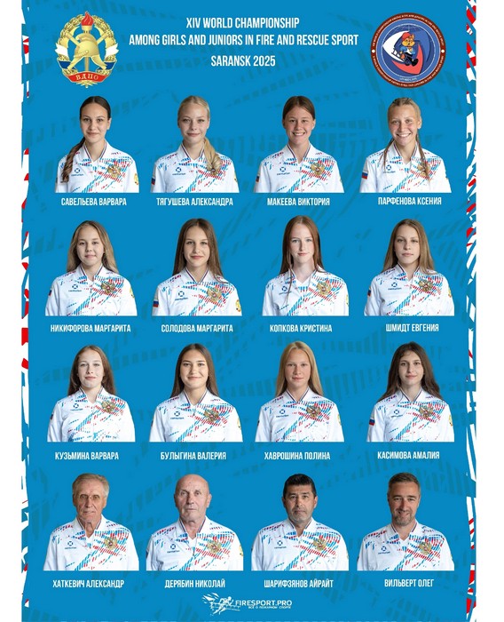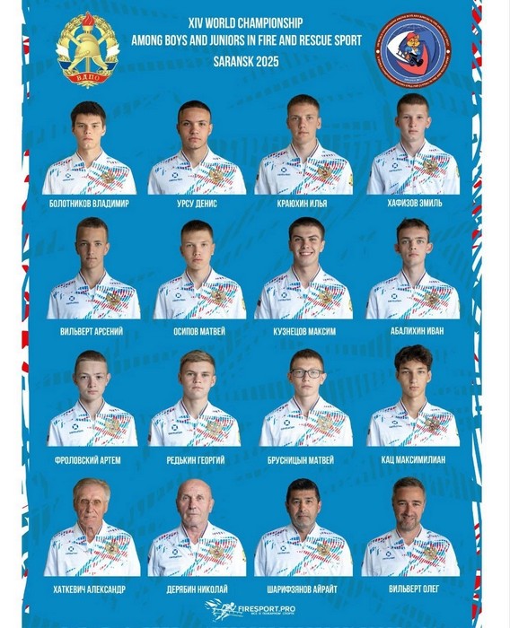 Состав сборной России на XIV Чемпионате мира среди юношей и юниоров по пожарно-спасательному спорту: