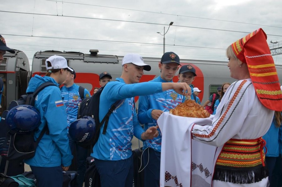 Наших спортсменов на мордовской земле приветствовал начальник Главного управления МЧС России по Республике Мордовия Сергей Репин. Теплый прием для членов сборных и тренеров сразу по прибытии, душистый каравай, пожелания успешных стартов, и, конечно, победы в международном Первенстве – прекрасная традиция гостеприимства в Саранске.