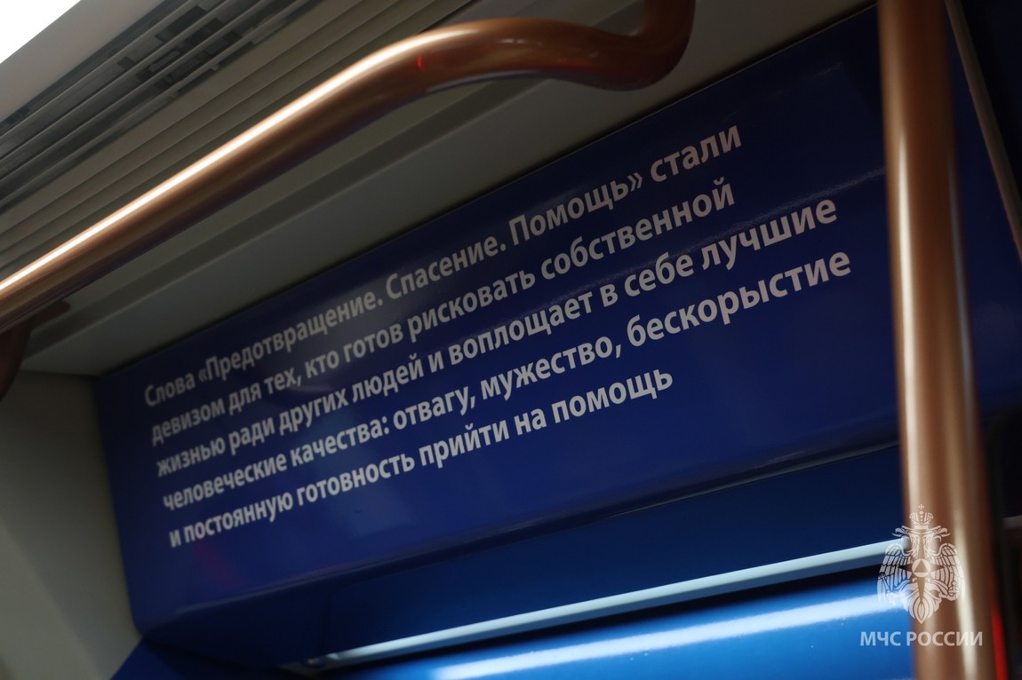 В каждом вагоне рассказ об истории и традициях ведомства, героизме и мужестве профессионалов разных специальностей, роли новейших технологий на службе спасателей и пожарных, а также важные правила безопасности.