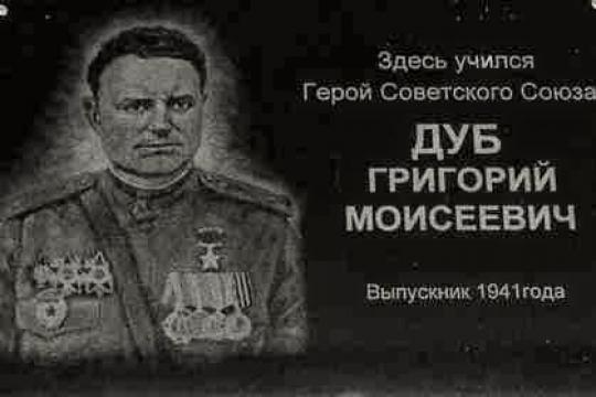 Установлена на здании школы, где учился Герой Совестского Союза Дуб Григорий Моисеевич.
