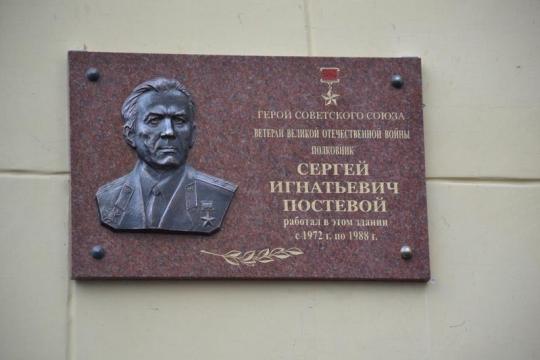 28 апреля 2017 года в Москве состоялась торжественная церемония открытия мемориальный доски на фасаде здания на Звездном бульваре д.7, где располагается Центральный аппарат Всероссийского добровольного пожарного общества. Она увековечила память Героя Советского Союза, легенды пожарной охраны России, Сергея Игнатьевича Постевого.