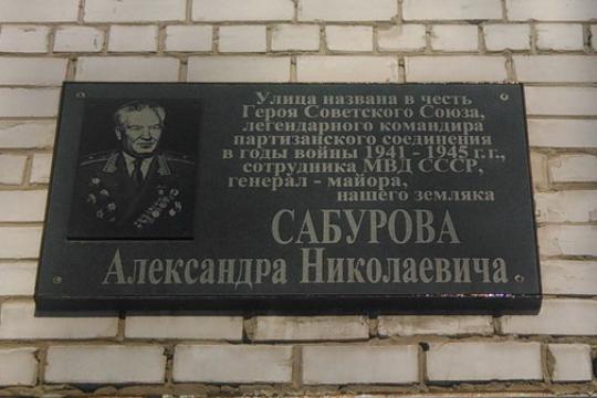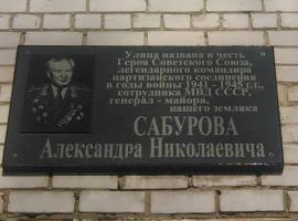 Улица названа в честь Сабурова Александра Николаевича – генерал-майор, командир партизанского соединения, Герой Советского Союза (1942).