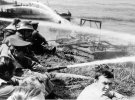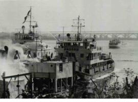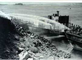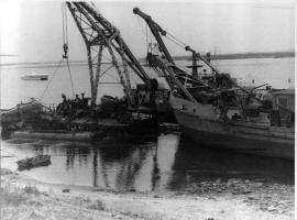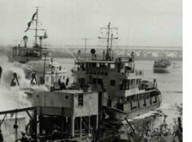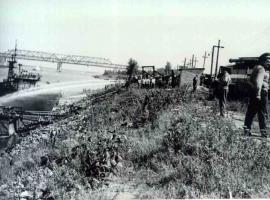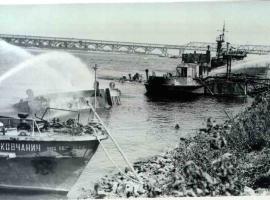 Около 9 часов 37 минут танкер потряс взрыв чудовищной разрушительной силы. Танкер разорвало на две половины, его кормовая часть погрузилась в воду. Пораженные огнем многие бойцы были сброшены в реку, прямо в горящий бензин. Соратники, оставшиеся на берегу, как могли, оказывали им помощь в спасении.