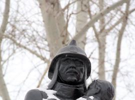 «Аллея памяти возведена в 2008 году в честь 60-летия образования пожарной охраны города Озёрска на средства, собранные личным составом и ветеранами Специального управления ФПС №1 МЧС России».