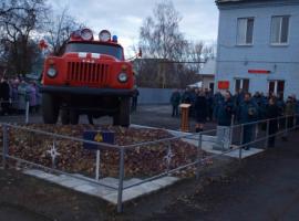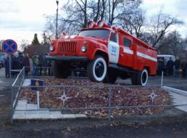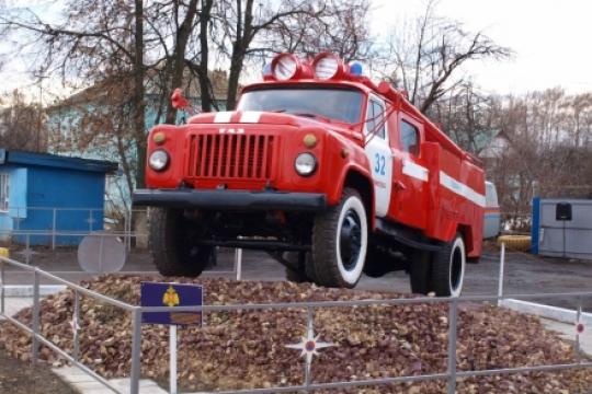 В поселке Змиевка постамент перед пожарно-спасательной частью № 32 украсил пожарный автомобиль на базе ГАЗ-53-А.