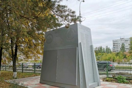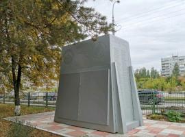 Авторы проекта – А. Торопов, А. Шатохин и Е. Сабитов. Памятник хотели установить к 30-летию со дня аварии на Чернобыльской атомной электростанции, но долго не могли решить вопрос с местом. Выбранную для размещения мемориала площадку вряд ли можно назвать удачной – прямо у дороги по ул. Российской, на небольшом пятачке у зеленой зоны. Но расположение рядом с бывшим профессиональным училищем №55 вполне закономерно: это было базовое учебное заведение для подготовки строителей Сибакадемстроя. Ликвидаторами аварии на ЧАЭС, приехавшими из Новосибирска, тоже были в основном сибакадемстроевцы. Их фамилии перечислены на боковых сторонах «саркофага». На его лицевой стороне – символический «ядерный гриб» и надпись: «Лицам, пострадавшим вследствие воздействия радиации». Ниже идет перечисление мест аварий: Семипалатинск, «Маяк», Чернобыль, Тоцкий полигон, Новая Земля.