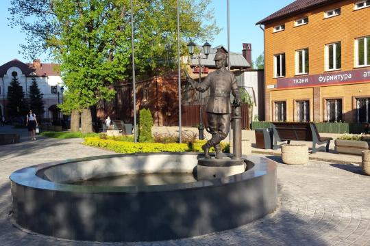 Памятник-фонтан пожарному установлен в Пожарном переулке Сергиева Посада в 2017 году. Изображает огнеборца, который играет со спасенной им кошачьей семьей слабой струей воды. 3 бронзовые фигурки кошек расположены по краям чаши фонтана.