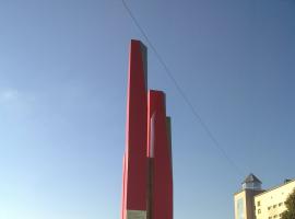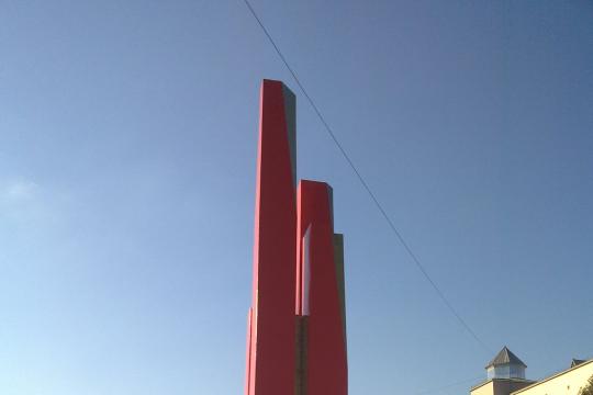 Красная стела высотой 5 м., установленная на черном мраморном постаменте в виде ступенек. На стеле находится табличка с фамилиями и инициалами сотрудников пожарной охраны Республики Татарстан, погибших при исполнении служебных обязанностей. Рядом со стелой находится красный барельеф, на котором имеется надпись: «Вечная память героям пожарным, погибшим на боевом посту».