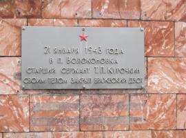 Этот памятник был установлен в мае 1982 года. К 70-летию Великой Победы монумент отреставрировали. Это трехметровая фигура солдата в шинели и буденовке. Таким запомнили гвардии старшего сержанта Курочкина. 21 января 1943 года он геройски погиб, освобождая поселок Волоконовка.