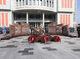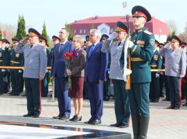 После открытия мемориального комплекса «Связь времен» и выступлений почетных гостей состоялось возложение цветов, во время которого военный оркестр АГЗ исполнил музыкальное произведение из кинофильма «Офицеры» - «От героев былых времен». В завершении рота почетного караула вуза прошла торжественным маршем.