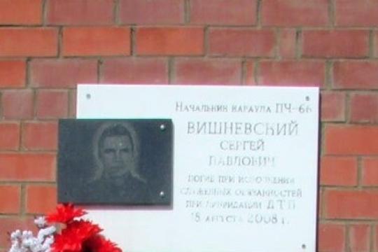 18 августа 2009 на фасаде ПЧ-66 Иркутская область, Слюдянский район, г. Слюдянка улица Ленина, 2а открыли мемориальную доску в честь Вишневского Сергея Павловича.