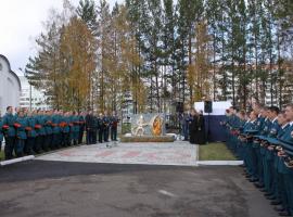 09.10.2017 года в городе Железногорске состоялось торжественное открытие памятника, посвященного пожарным и спасателям Специальной пожарной охраны России. Монумент украсил территорию Специальной пожарно-спасательной части №10.