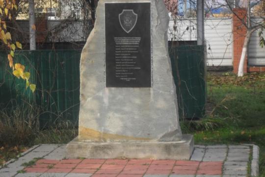 Краткое описание памятного места: памятный камень выполнен из дикого природного камня, привезенного личным составом из карьера «Медвежья гора» Северского района. На лицевой части камня расположена мраморная табличка с надписью: «Памятный знак открыт в честь 360-й годовщины со дня образования пожарной охраны России и в честь тех, кто стоял у истоков развития Северского гарнизона пожарной охраны: