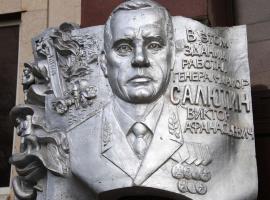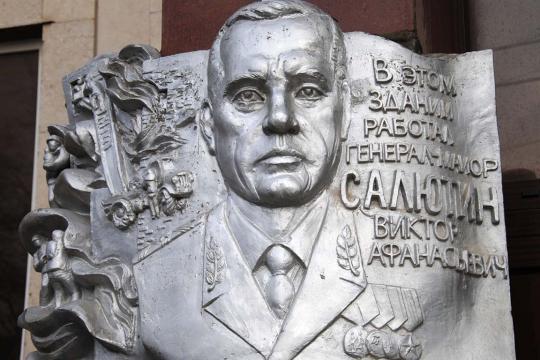 Мемориальная доска на здании учебно-методического центра по ГОЧС Ростовской области, где работал генерал-майор Салютин Вктор Афанасьевич.