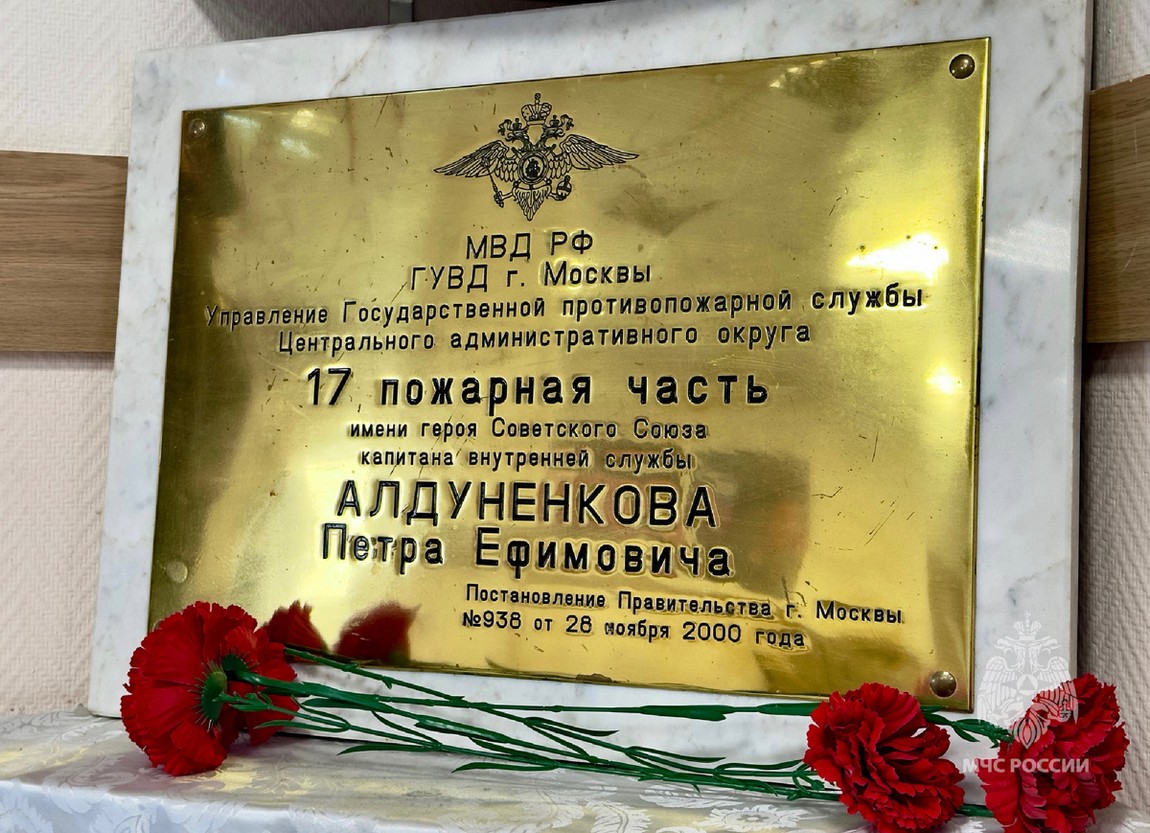17-я пожарная часть Управления по ЦАО Главного управления МЧС России по г. Москве гордо носит имя Героя Советского Союза, капитана внутренней службы Петра Ефимовича Алдуненкова. Имя героя было присвоено части Постановлением Правительства Москвы № 938 от 28 ноября 2000 года.