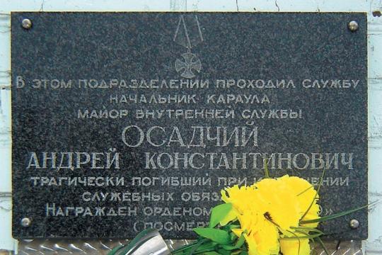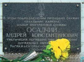 Андрей Осадчий погиб 21 февраля 1999 года. Он работал в должности начальника караула 27-й пожарной части. В тот трагический день его боевой расчет выехал на тушение пожара в подвальном помещении многоквартирного дома. По прибытии к месту происшествия стало понятно, что есть угроза жизни людей, находящихся в здании. Бросившись со стволом к самому очагу пожара, Андрей осадчий сдерживал пламя до последнего момента, не давая ему распространиться на жилые квартиры.