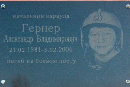 Лейтенант внутренней службы Гернер Александр Владимирович проходил службу в 3-й пожарной части по охране Московского района городского округа «Город Калининград» в должности начальника караула и погиб при тушении пожара 3 февраля 2006 г.