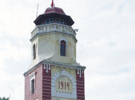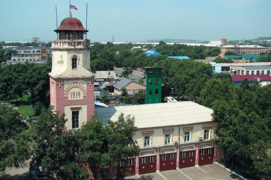 Год постройки – 1914-й, архитектор не установлен. Кирпичное оштукатуренное прямоугольное в плане с пожарной каланчой здание. Находится на перекрестке улиц Амурской и Ленина. Число этажей 2, и с 3-го по 6-й этаж – сторожевая башня. Фундамент бетонно-ленточный. Наружные и капитальные стены кирпичные.