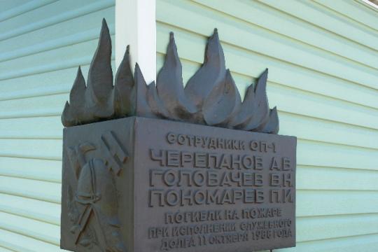 Мемориальная доска расположена на здании 9 ПСЧ ФПС ГПС ФГКУ «1 отряд ФПС по Алтайскому краю». Она посвящена сотрудникам пожарной части, ранее отдельного поста пожарной части №1, погибшим при исполнении службы: