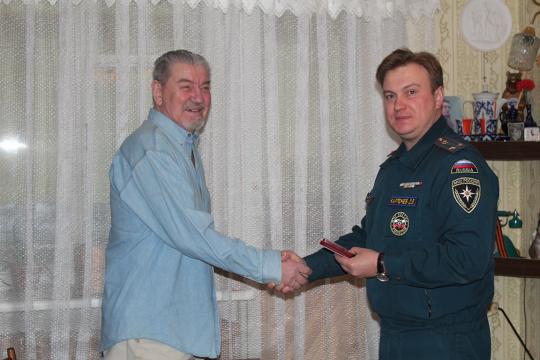 В апреле 1978 года, в условиях, сопряженных с риском для жизни, мужественно и умело руководил личным составом для предотвращения взрыва и пожара при аварии на нефтебазе, размещенной в пределах Великого Новгорода.