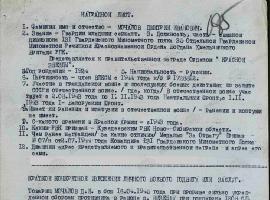В боях в районе д.Подречье, в полосе действия 413 ОД, 23.06.1944 проявил себя храбрым воином. Участвовал в группе разведчиков по разведыванию дорог, на пути встретились с группой немцев. Завязалась рукопашная схватка. В этом бою он уничтожил 6 немцев и 1 взял в плен.