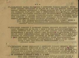 В бою 16.04.1945,при прорыве сильно укрепленной обороны противника в районе д.Визенау, при поддержке 1208 СП 362 СД, под сильным артиллерийским и минометным огнем противника своевременно четыре раза доставлял секретные оперативные документы на наблюдательный пункт командира дивизиона, этим способствовал современному выполнению боевой задачи, поставленной перед дивизионом.
